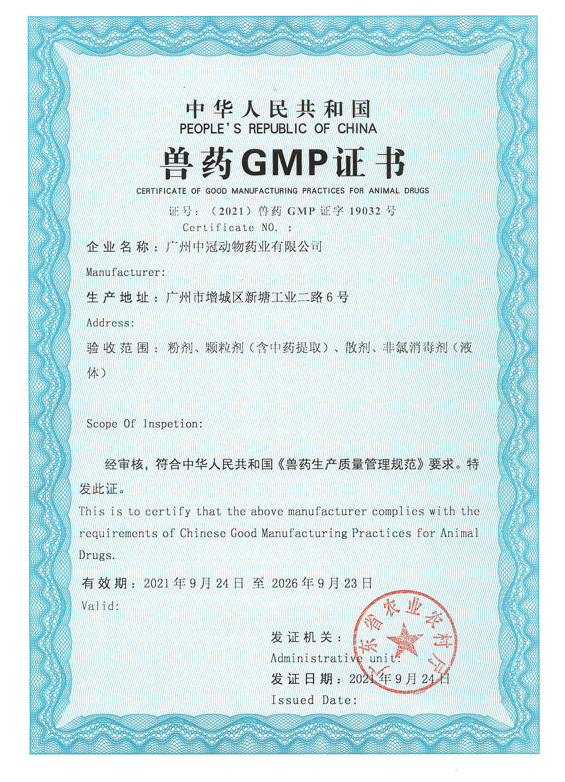熱烈祝賀廣州中冠動物藥業有限公司 新生產基地順利通過獸藥GMP驗收